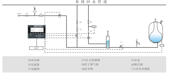 ■ 補壓管道和泄壓管道都連在系統上,因此必須保證系統水體不含污物;