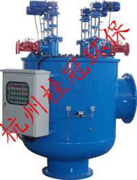 HGDSLD系列大流量自清洗過濾器由四個不銹鋼過濾芯組合在個罐體內,其主要構件是由四個濾芯與四組吸污裝置構成。過濾時污水從過濾器下部進入并分布到各個濾芯。污水由濾芯的內側向外側進行過濾。污水中固體物被濾網截留下來;通過一臺電力馬達驅動清洗機構,作旋轉及上下運動的吸吮掃描器,吸吮掃描器內部與一個3”排污閥相通,在排污閥打開時,過濾器內部水壓與外部大氣之間形成的壓差使每個吸嘴產生強勁吸力,掃描器將濾網雜質吸下并通過排污閥排出,這個清洗過程大約需要35-60秒鐘。過濾器的四個濾網輪流清洗。在整個反清洗過程中,系統不斷流。