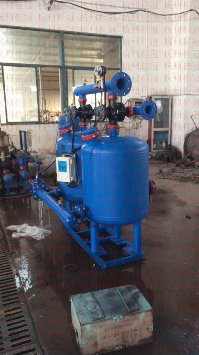 本公司生產的全自動砂石過濾器,主要是指砂石過濾器和楔網過濾器的自動反沖洗。是將手動控制閥門改用二位二通、二位三通水動、電動閥門,通過控制器的壓差、時間控制,開啟和關閉閥門,從而達到過濾器的自動反沖洗。