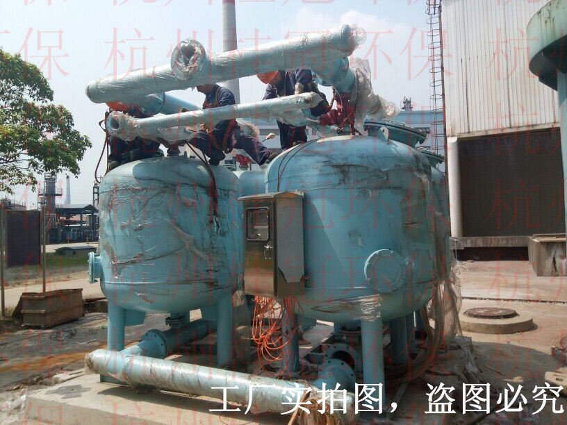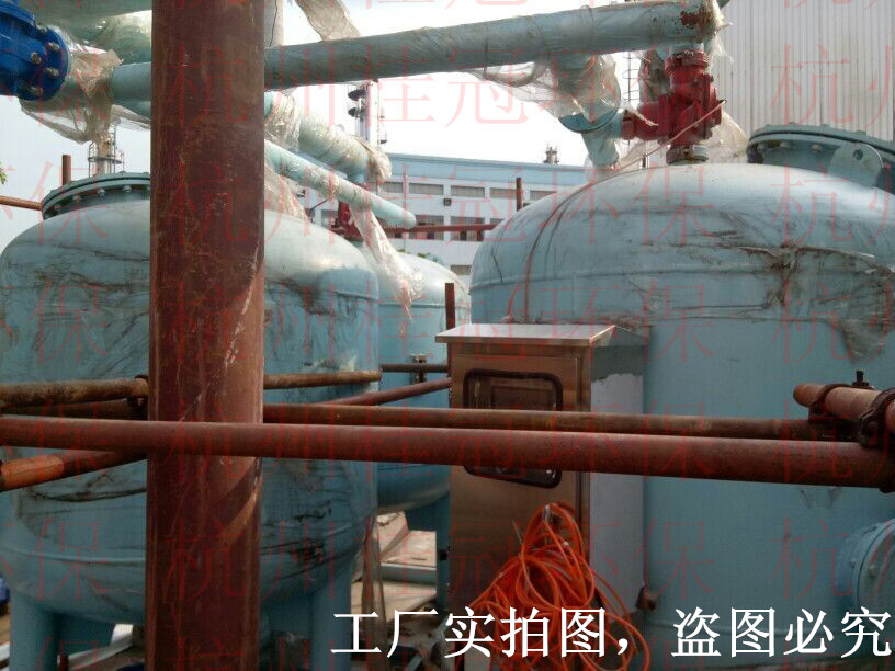 當系統處于反洗狀態時,過濾仍然繼續,其中要進行反洗的標準單元砂缸不進行過濾,系統中其它標準單元砂缸仍然在過濾。過濾后的清潔水部分用來反洗標準單元砂缸,其余仍送到用戶處。反沖洗污水則通過水力閥的反洗排水口被排出。在高速砂缸全自動高效過濾系統中,特殊的集水器設計可使填料之間填料相互搓洗,最大限度地提高反沖洗效率,減少所需的反洗水(清潔水),同時反洗時沒有跑料現象。一個標準單元砂缸反洗為2分鐘,反沖洗結束,標準單元砂缸內部壓頭損失減小到合理范圍,定壓裝置給出復原信號,水力閥恢復到過濾狀態,下一個標準單元砂缸則準備進入反洗狀態。